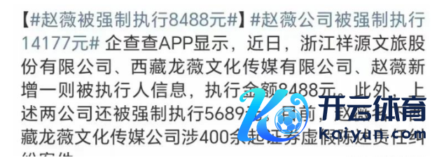 本年,赵薇再次爆雷,其名下部分股权被冻结,公司新增被践诺东说念主信息。